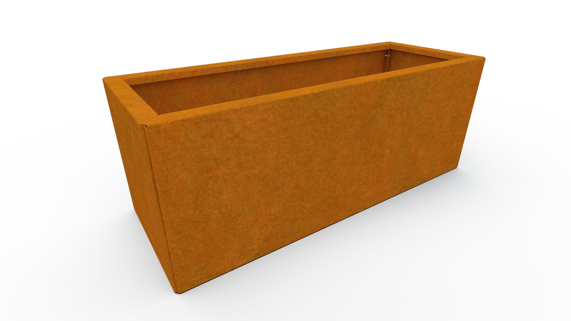 Metalna žardinjera izrađena je od visokokvalitetnog 1,5 mm debelog corten čelika, poznatog po iznimnoj otpornosti i dugom vijeku trajanja. Corten s vremenom razvija prirodnu smećkastu patinu, koja mu daje prepoznatljiv, moderan izgled. Patina nastaje postupno i omogućuje da je žardinjera postojana u svim vremenskim uvjetima, bez potrebe za bojanjem ili dodatnim održavanjem.