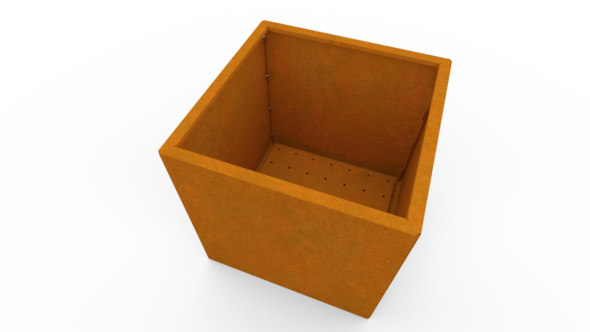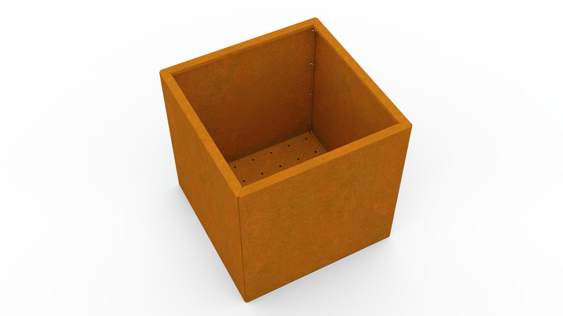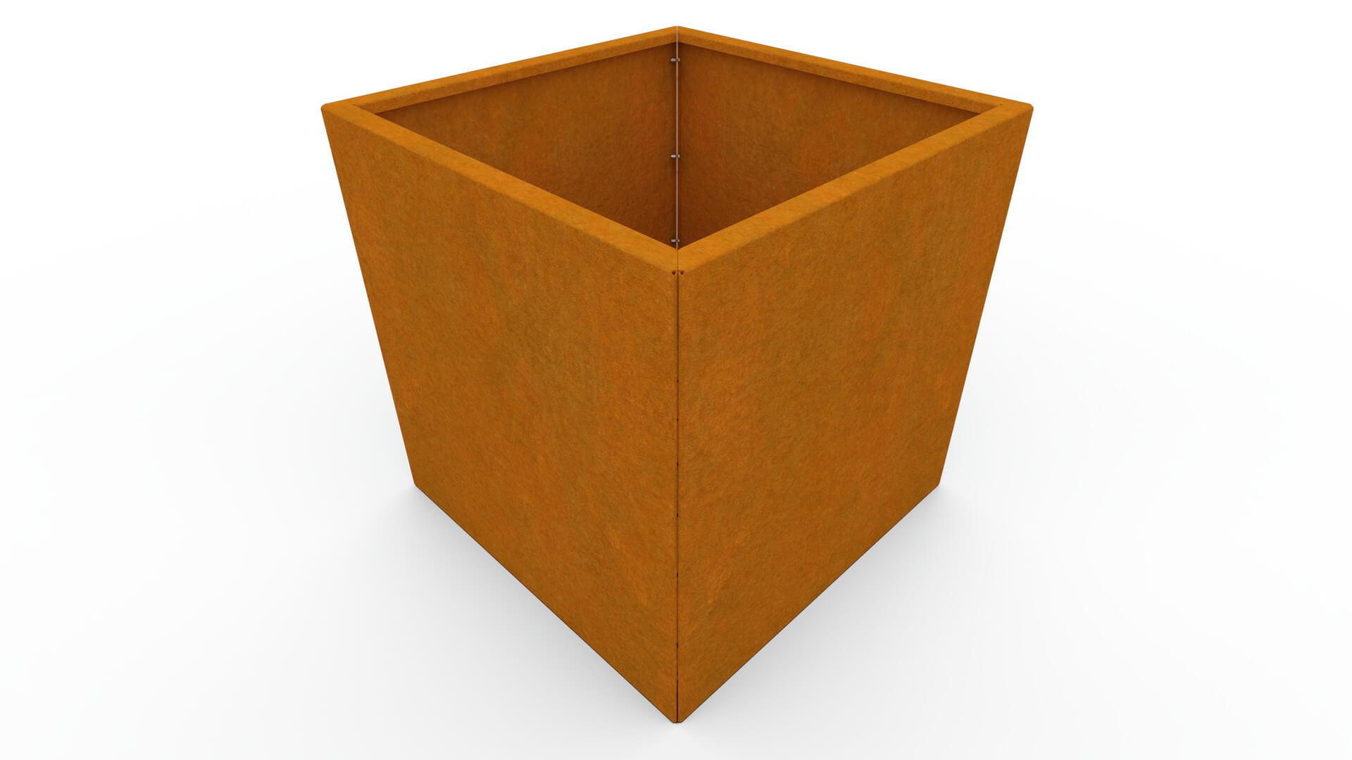 Metalna žardinjera izrađena je od visokokvalitetnog 1,5 mm debelog corten čelika, poznatog po iznimnoj otpornosti i dugom vijeku trajanja. Corten s vremenom razvija prirodnu smećkastu patinu, koja mu daje prepoznatljiv, moderan izgled. Patina nastaje postupno i omogućuje da je žardinjera postojana u svim vremenskim uvjetima, bez potrebe za bojanjem ili dodatnim održavanjem.